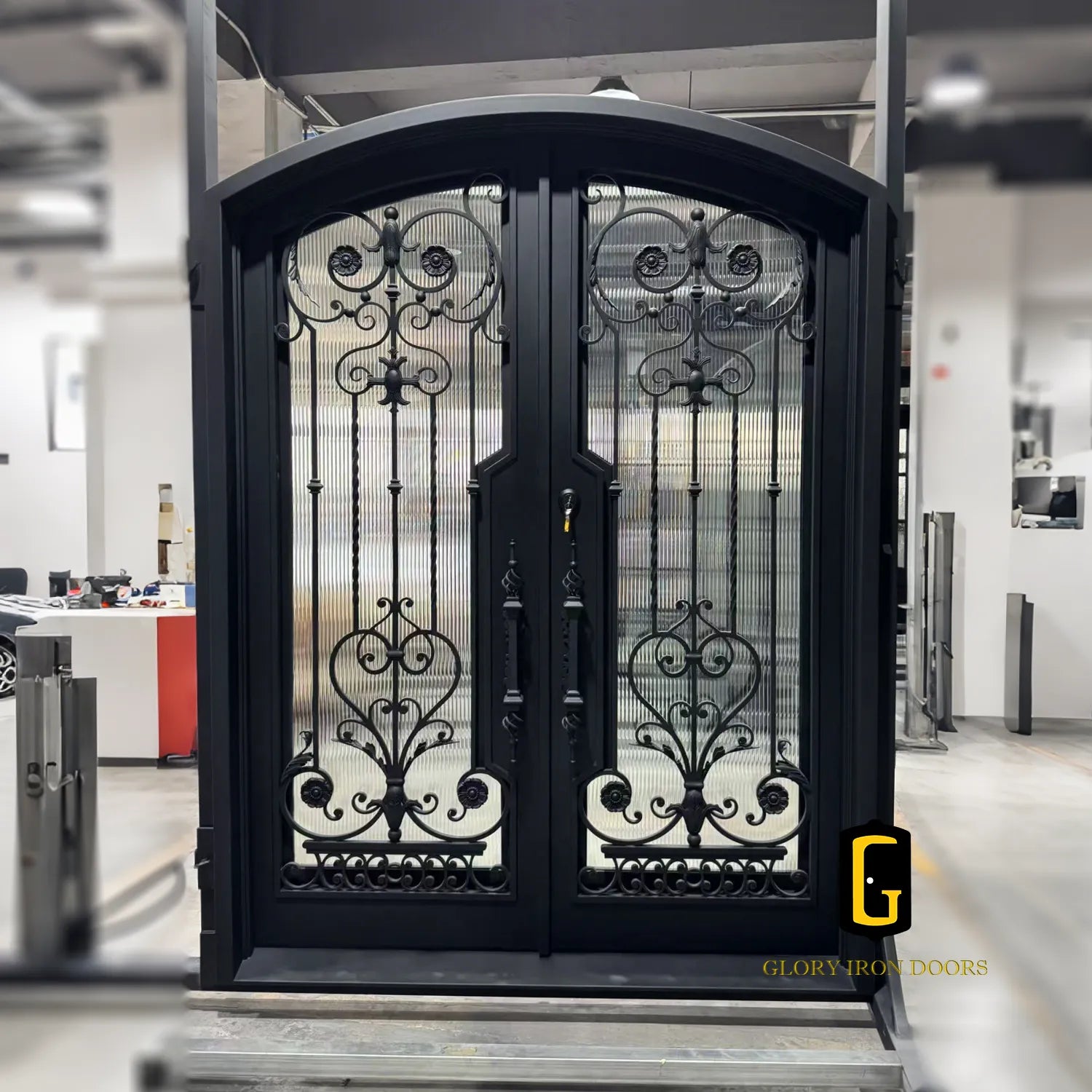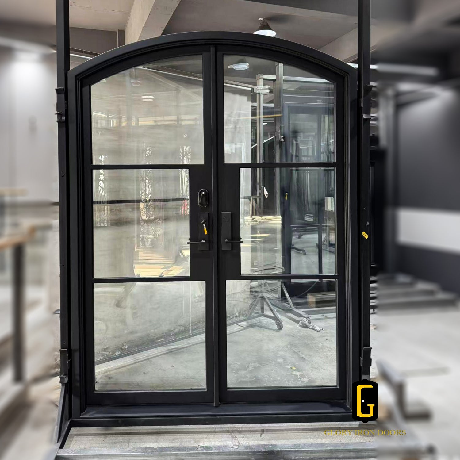 GID Double Iron Front Door with Arched Top Tempered Glass ED175
