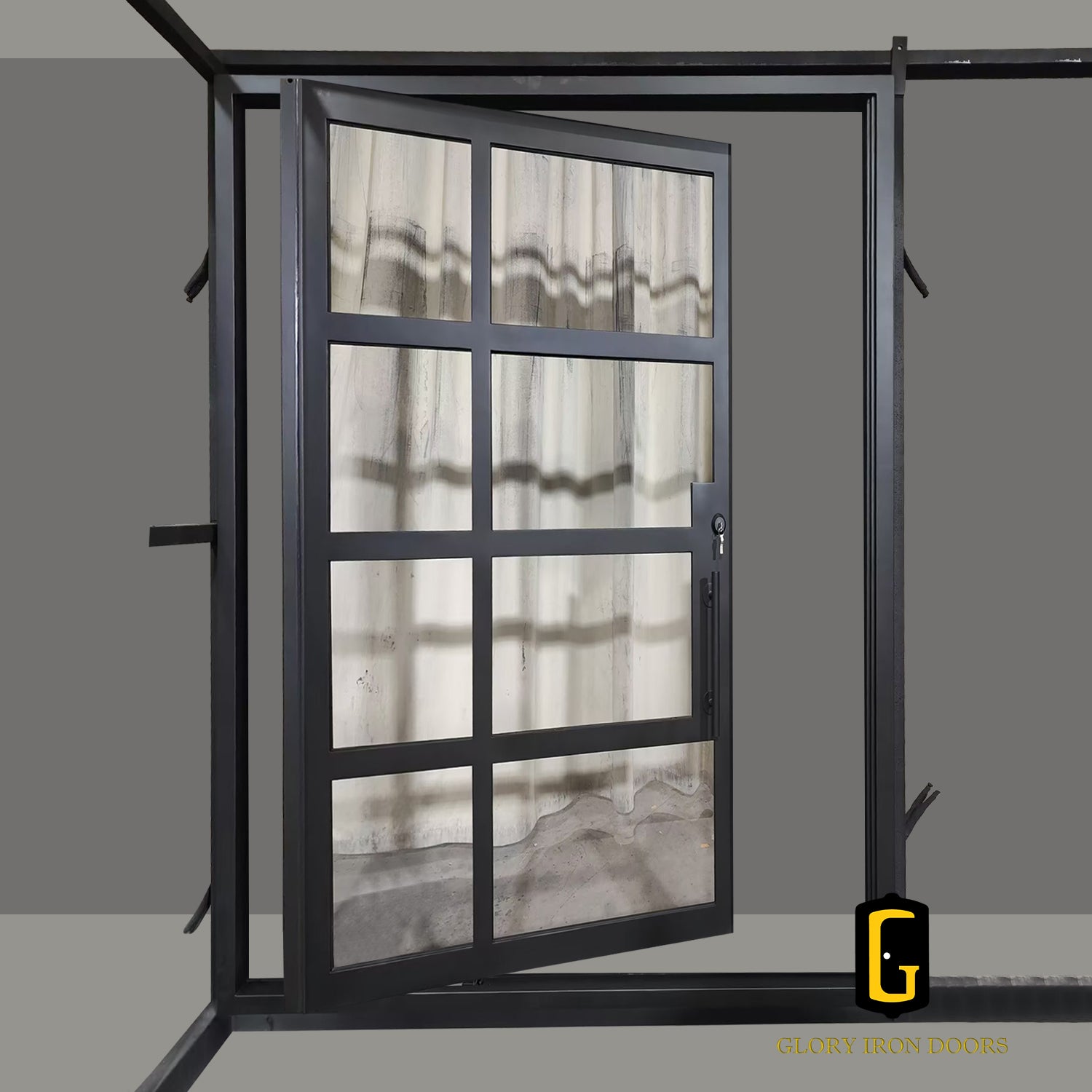 GID Custom Made Iron Frame Pivot Door With Full Clear Glass PD108