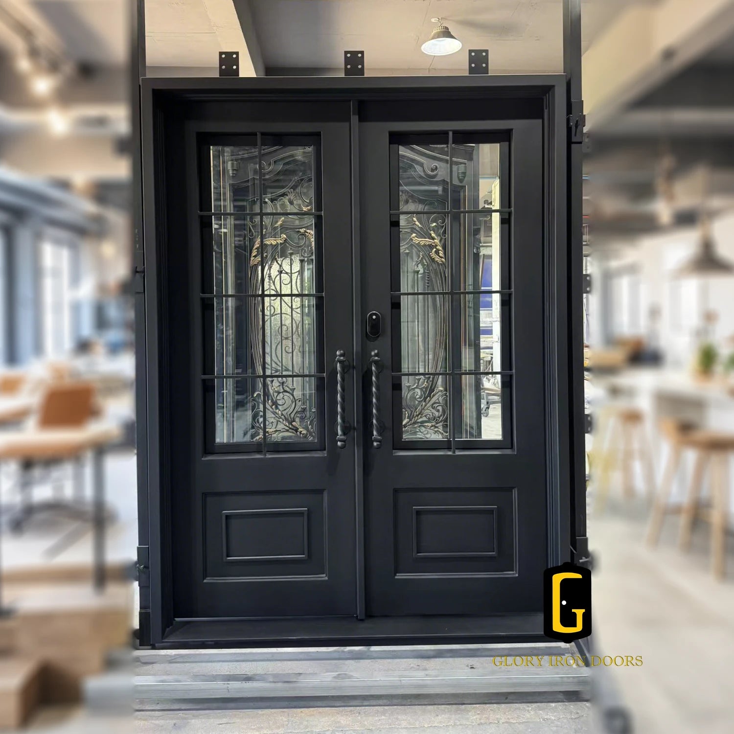 GID Wrought Iron Front Double Door with Full Solid Steel Panel ED132